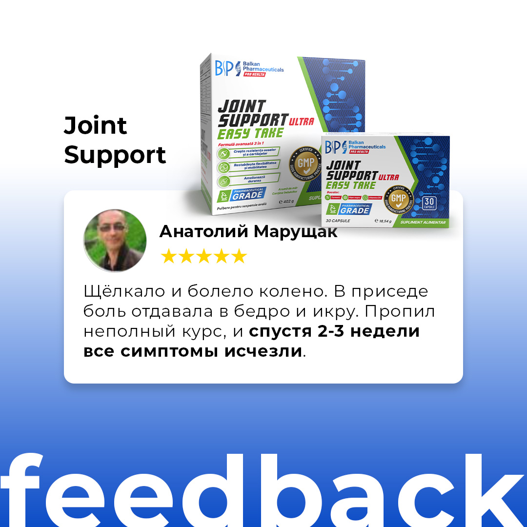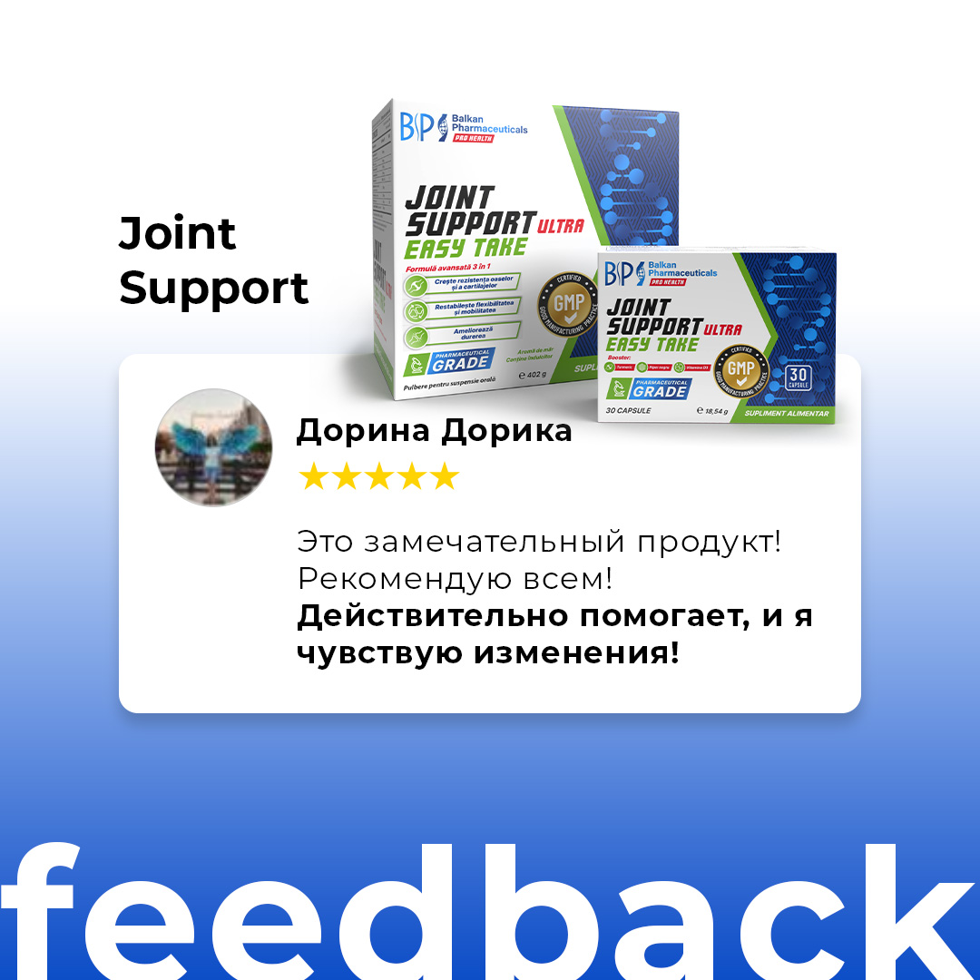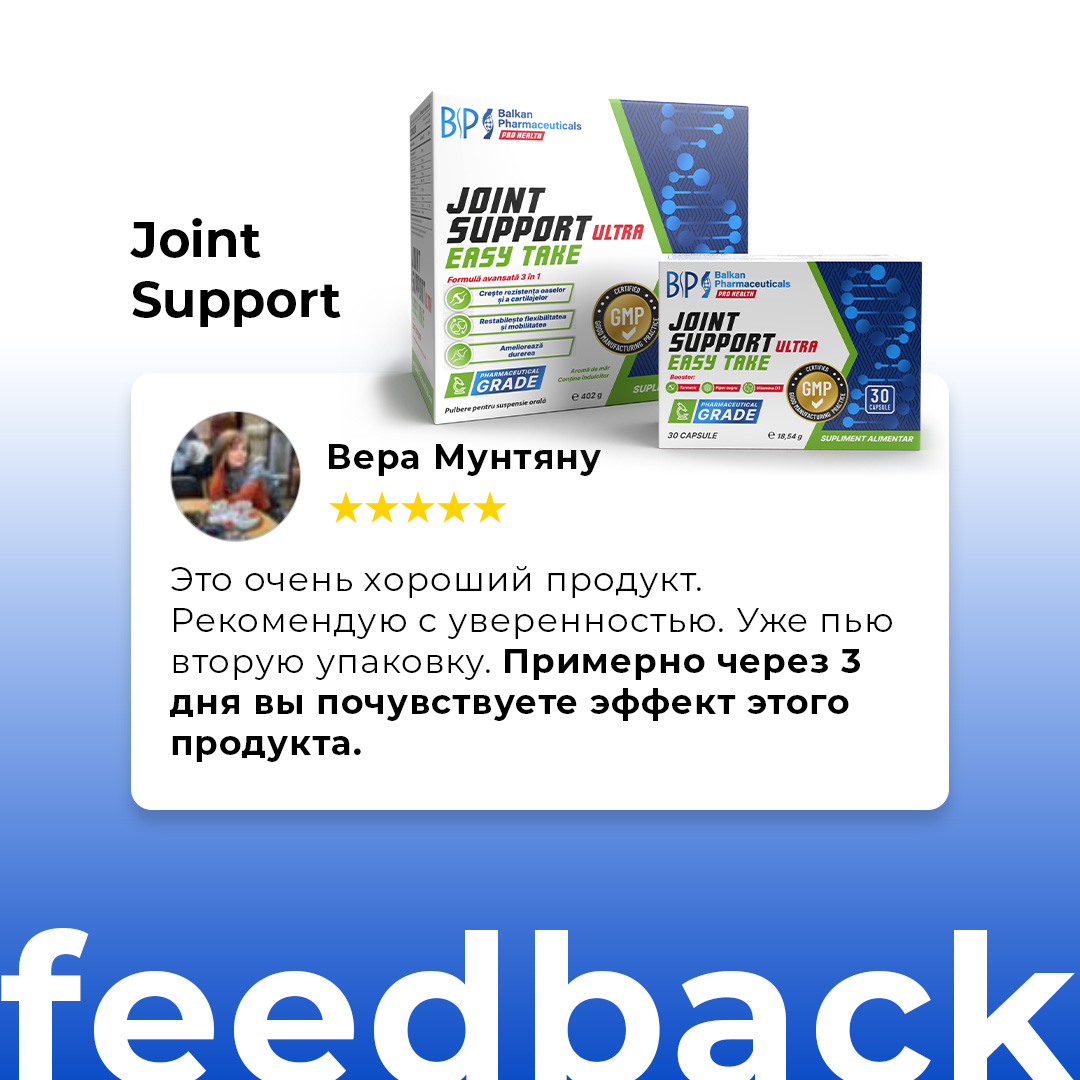 Дополнение для суставов от Balkan Pharmaceuticals предлагает активным людям высокую дозу МСМ в 3000 мг, 300 мг куркумина и 200 мг босвеллии, которые, согласно многим исследованиям, оказывают противовоспалительное действие, снижают окислительный стресс в организме и восстанавливают гибкость.