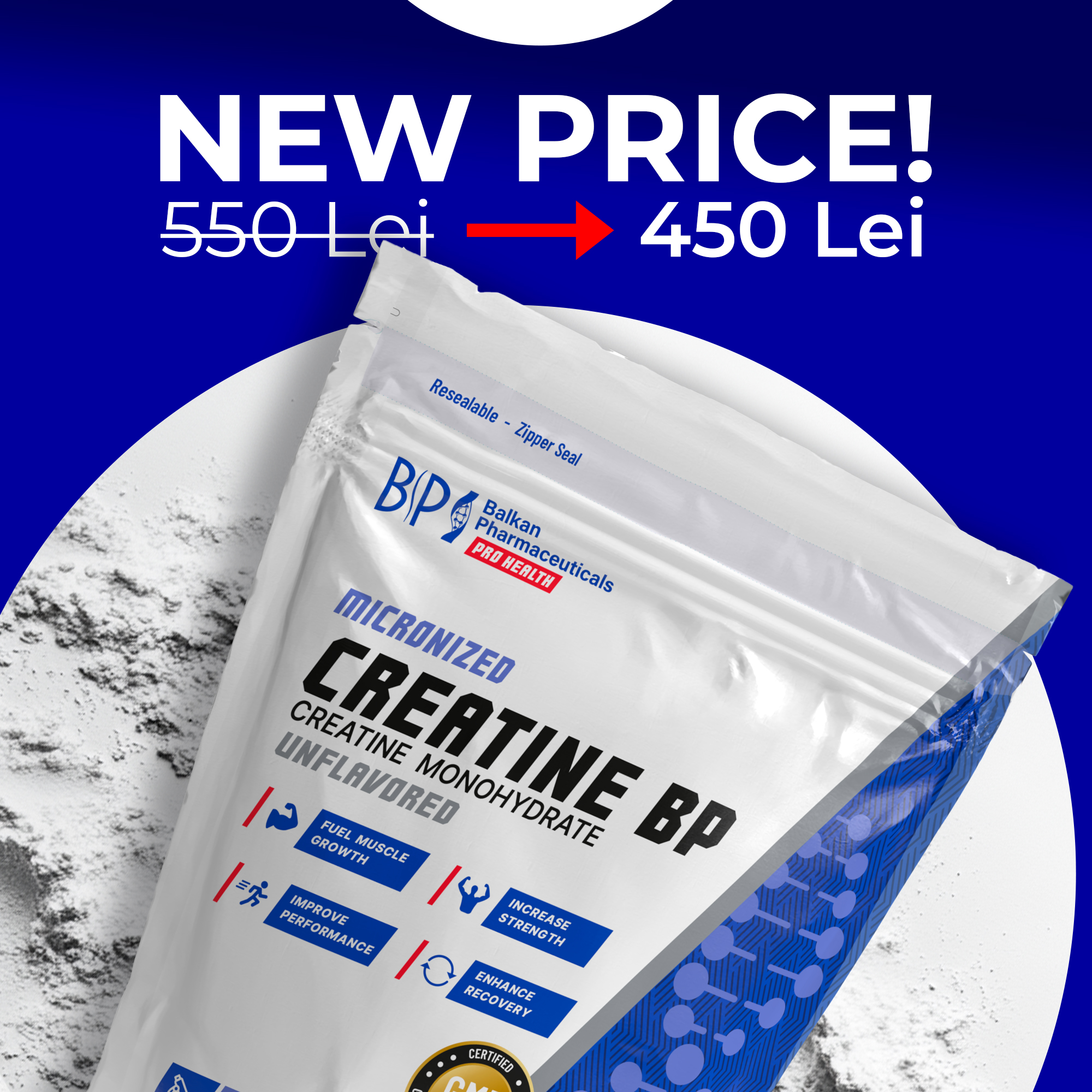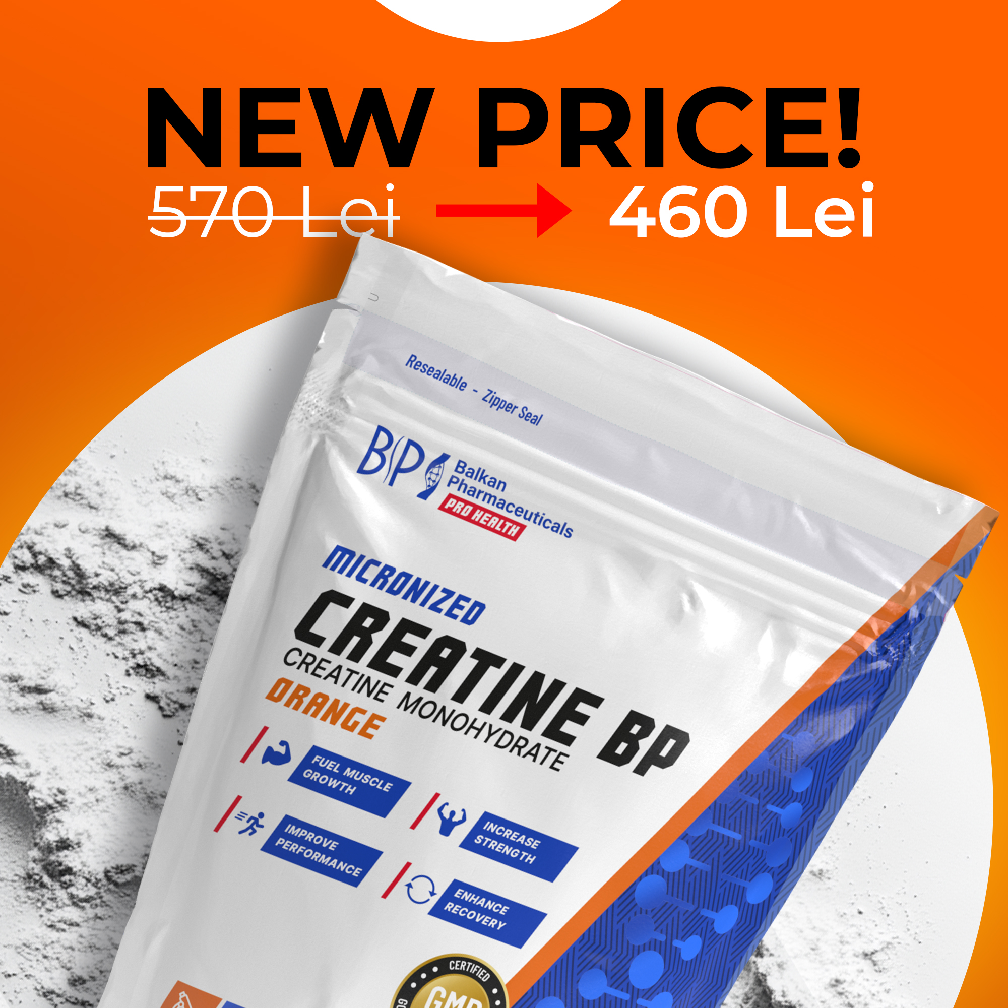 Creatine BP crește fluxul de sânge către mușchi și ajută la sporirea forței și a performanței fizice.